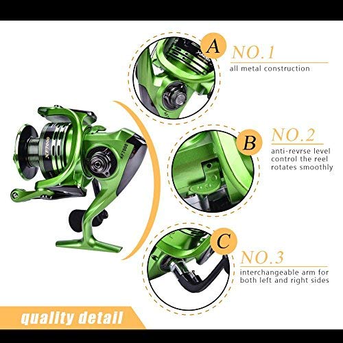 Hergestellt die Gesamtheit strapazierfähigem Metall, fein verarbeitet, robust, rostfrei, langlebig und schlank. Das 13 + 1-Kugellager mit hervorragendem Übersetzungsverhältnis macht das Drehen reibungsloser und schneller. Die hochfeste Spiegelachse ist zuverlässiger und sorgt für eine lange Lebensdauer.