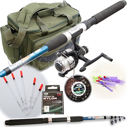 Im Set 8ft 2,4 m Stange Reel unter Einsatz von der Linie vorgeladen 4 verschiedene Größe Schüsse 5 Mob von Schwimmern Packung von Federn Packung von Haken nlyon CARRYALL aka!