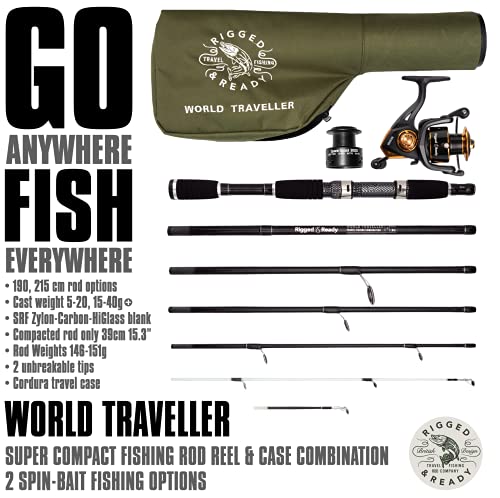 Rigged & Ready Premium Angelruten und Rollen Set. Angelrute für die Reise, Steckrute in Einer Länge von 205 cm, aus 6…