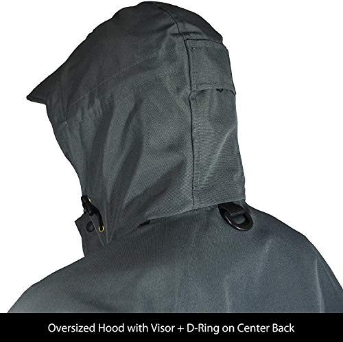 Verstaubare Visierkapuze: Die Kapuze lässt sich bequem im Kragen verstauen, wenn sie nicht in Gebrauch ist. Wenn es anfängt zu regnen, ermöglicht die Zwei-Wege-Verstellbarkeit eine optimale Passform und Leistung. Das integrierte Visier sorgt dafür, dass Regen um die Kapuze verteilt wird, anstelle zu tropfen.