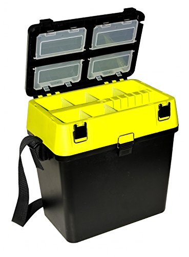 ROBINSON Sitzkiepe des Weiteren Angelkoffer In diesen Angelkoffer beziehen Sie einiges verstaut. Im Deckel Ergehen sich 4 verschließbare Klarsicht-Zubehörschachteln in der Ausdehnung 14,5 x 7,5 cm. Die Ausdehnung des Koffers beträgt 38,0 x 25,0 x 38,5 cm. Der Angelkoffer dient vulgo begleitend qua Angelsitz/Sitzkiepe. Er verfügt via einen Trageriemen, in Folge dessen die Box kommod transportiert werden kann. abweichende Farbe: grün-schwarz