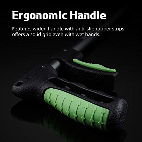 Ergonomischer Griff: Mit breiterem Griff mit Anti-Rutsch-Gummistreifen, bietet einen soliden Halt alias mit nassen Händen; der ausgehöhlte Griff aus hochfestem Antiblockiersystem reduziert das Gewicht erheblich, ohne Einbußen bei Stärke und Haltbarkeit zu machen.