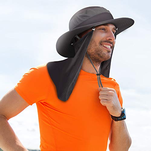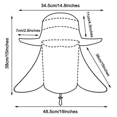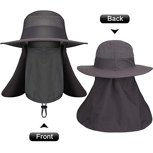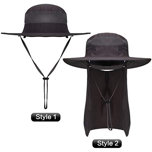 Der Outdoor-Sonnenhut mit breiten Kanten ist mit abnehmbarer und abnehmbarer Halsklappe und Mesh-Gesichtsschutz ausgestattet. Sie können ihn nach Ihren Wünschen herumgammeln, auch mit winddichtem Design, damit Ihr Hut nicht vom Wind weggeblasen wird kann Ihr Gesicht, Auge, Ohr und Hals vor Sonnenlicht schützen.