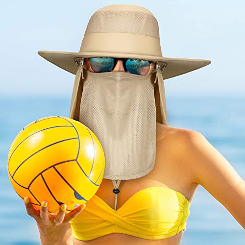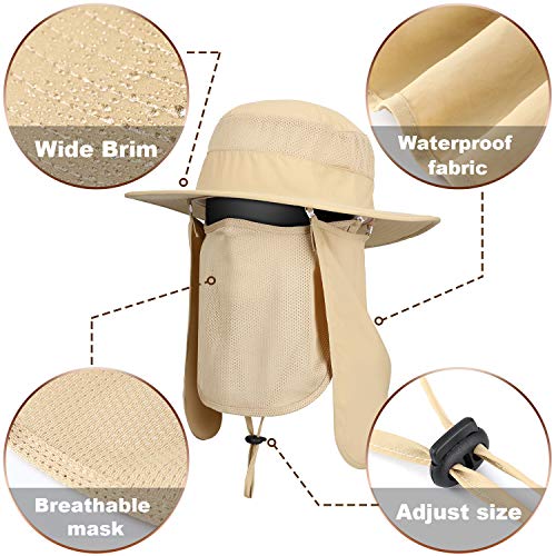 Sonnenschutz: Der Outdoor-Sonnenhut mit breiten Kanten ist mit abnehmbarer und abnehmbarer Halsklappe und Mesh-Gesichtsschutz ausgestattet. Sie können ihn nach Ihren Wünschen herumgammeln, auch mit winddichtem Design, damit Ihr Hut nicht vom Wind weggeblasen wird kann Ihr Gesicht, Auge, Ohr und Hals vor Sonnenlicht schützen