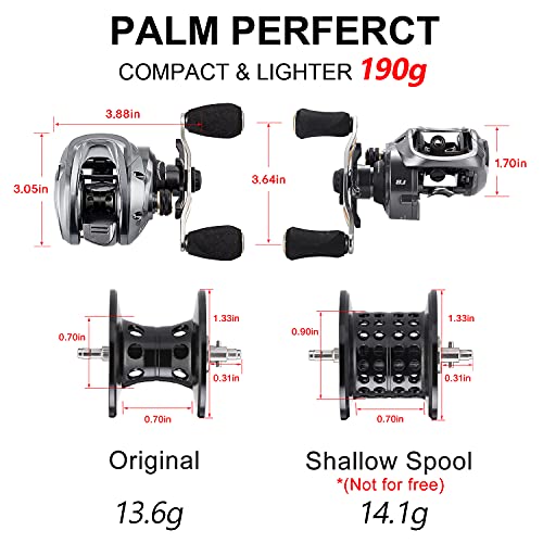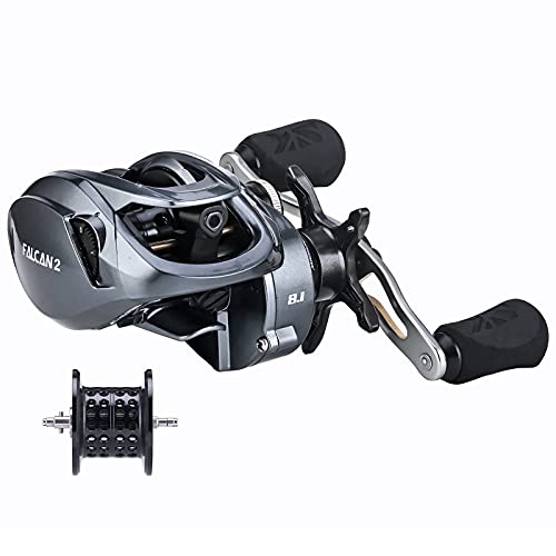 Glatt – Die Falcan2-Ködergussrolle hat überlegene abgeschirmte 11 + 1 beständige Kugellager, gefräste Aluminiumspule bietet Größe, ohne überschüssiges Gewicht anstelle ein reibungsloses Auswerfen.