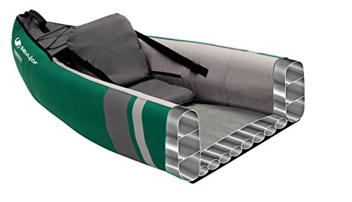 Produkt 1: Das kompakte Kanu hat eine robuste Polyester-Außenhülle mit abgeklebten Nähten, zwei PVC-Seitenkammern und eine Bodenkammer mit Stegkonstruktion zugunsten hohe Haltbarkeit auf dem Wasser