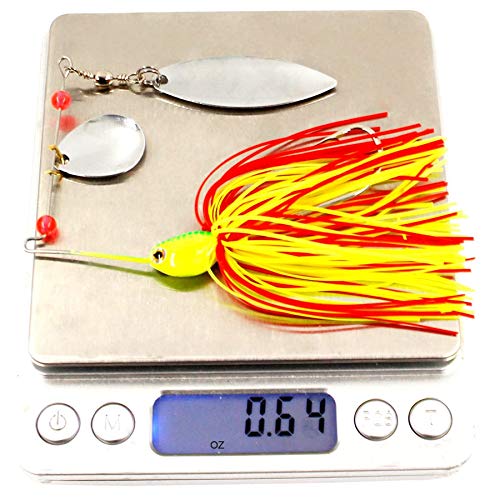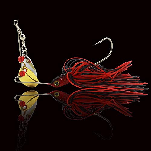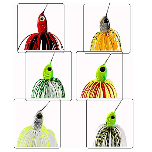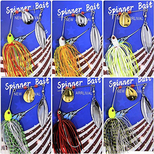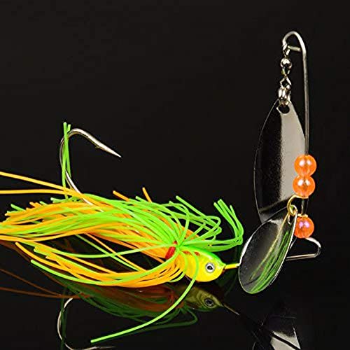 Dieser Spinnerbait hat Metalllöffel, einen mehrfarbigen Körper ansonsten Neonschwanzfedern. Ein großartiger Generalist, der leer Arten von Fisch anzieht.