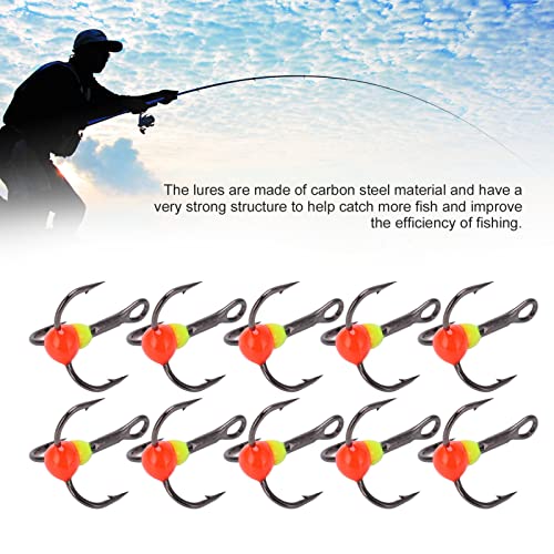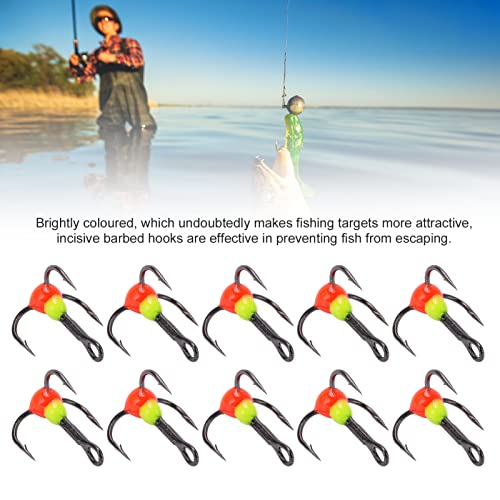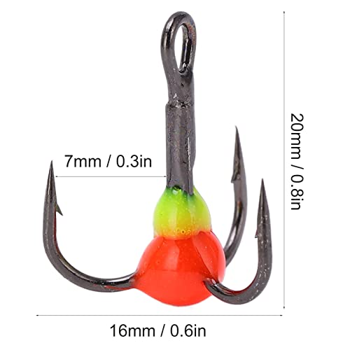 4. Hakenspezifikationen: Drillingshaken der Größe 10, via 20 mm / 0,8 Preis Länge, 16 mm / 0,6 Preis Breite und 7 mm / 0,3 Preis Hakenbreite.