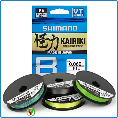 Die 8fach geflochtene Schnur Shimano Kairiki 8 wurde überarbeitet und verbessert. Die in Japan produzierte Schnur wird nun unter Anwendung einer speziellen Flechttechnologie, der „VT-Konstruktion Methode“, hergestellt. Es handelt sich um eine Allerbest starke und glatte PE Schnur, die sich perfekt zum Werfen großer Distanzen eignet. Sie ist in Durchmessern von 0,06 mm bis 0,42 mm mit einer erstaunlichen Bruchfestigkeit von 46,7 kilogramm erhältlich. Sie hat die perfekten Eigenschaften für das Spinnfischen sowohl im Süsswasser als alias im Salzwasser, da sie Allerbest feinfühlig und glatt ist, was zudem die Geräuschentwicklung phänomenal reduziert. Neben den Farben Hellgrün und Stahlgrau sind nun zwei weitere Farben erhältlich. Ein einverstanden sichtbares Gelb und Multicolor bessern neuzeitlich die Farbpalette. Die Multicolor ist außerordentlich interessant zum Angeln in größeren Tiefen. Aufgrund der Glätte und des geringen Durchmessers ist die neue Kairiki 8 eine großartige Schnur zum Jiggen, da sie einen geringen Wasserwiederstand hat und aufgrund der maximalen Dehnung von