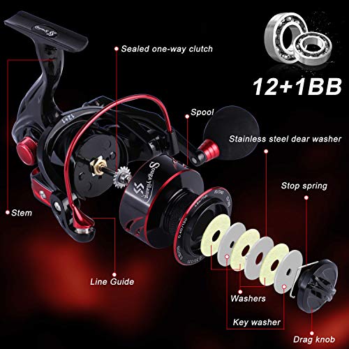 Sougayilang Angelrollen Spinnrollen Süßwasser Salzwasser Angelrolle 12+1BB Spinnrolle,Leichtgewichtig Glatt…