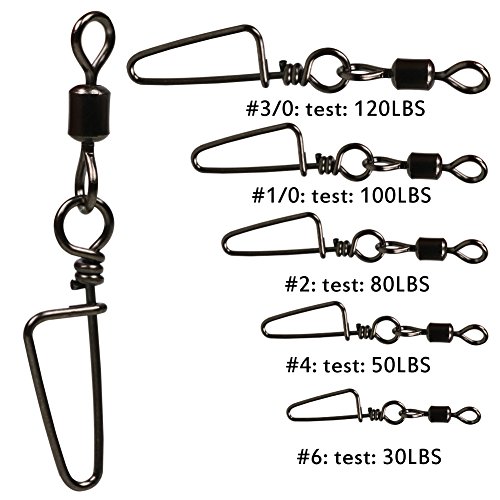 30 Phase Angelwirbel mit Coastlock-Druckknöpfen, Größe #6-#3/0 (klein). Zugelassen an Stelle den Einsatz in Salzwasser, Hochgeschwindigkeitsschleppen, Jiggen, Offshore-Angeln. Kleine Größe wäre ideal an Stelle Süßwasser qua Barschangeln.