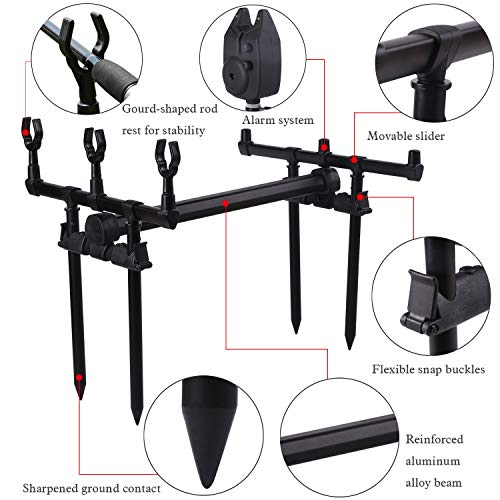 Universelle Anwendbarkeit — Scharfer und stabiler Vierpunkt-Bodenkontakt zum einfachen Anpassen in die Erde, wodurch die Halterung fester steht. Im Rahmen zum Angeln in Fluss, See, Teich, Stausee, Meer usw.