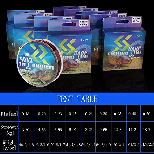Excellent pull value–The umfassend range of lines in the coarse carp range are 10-41LB and suited to all sea fishing situations. 10-18LB The lighter line is einwandfrei for leicht beach fishing for Flatfish, bass Mullet etc.18-40LB fishing line is perfectly suited to carp fishing with larger sized fishing weights and safety rigs.