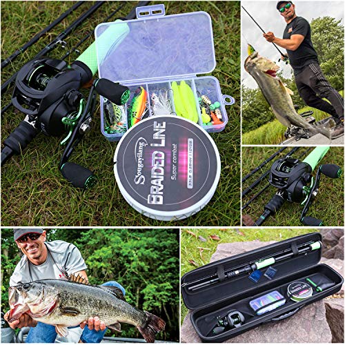 Perfekte Kombination: Sie bestehen jeder einer kohlenstoffarmen, hochglasigen Karbonfaser-Methode, so dass das Gewicht reduziert und die Empfindlichkeit erhöht und die Länge Ihrer Würfe erhöht. Eine Angelkombination speziell für Barsche mit hoher Empfindlichkeit.