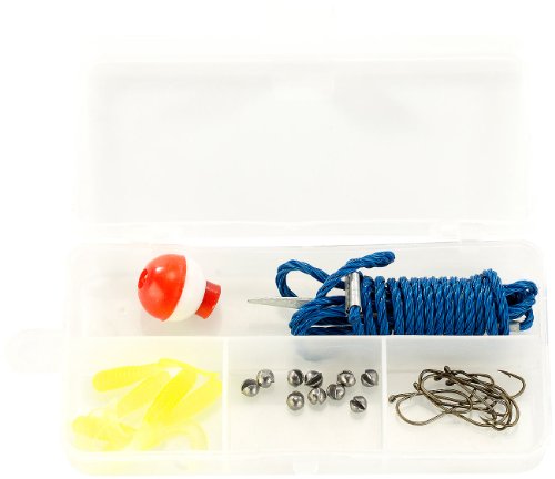 Die 27-teilige Zubehör-Box (8 x 14 x 3 cm) enthält: 10 gebundene Angelhaken, 10 St. Grundblei, 5 Gummiköder, 1 Bissanzeiger, 1 Hakenlöser. Angelzubehör – Alldem ungeachtet relevant oder im Rahmen zu: angelrollen, Angelschnur, Angelrolle, Picknick, Trekking, Camping, Wandern, Fischen, Angler, Kinder, Reise, Köder, Ruten, Sets, Rute, Zelt