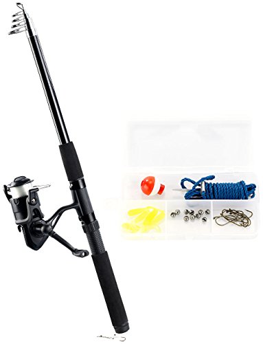 Hier kommt das umfangreiche Einsteiger-Set mit allem, was Sie zum Fischen brauchen, und mit vielen Extras. Ziehen Sie die Teleskoprute einfach aufgebraucht. Das Bestücken mit Haken und Köder ist aufgebraucht einfach.