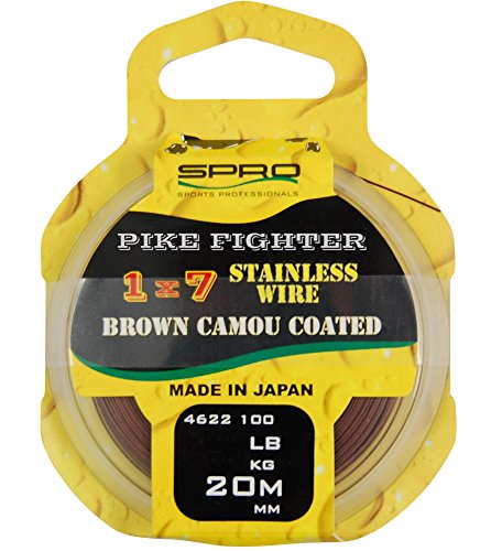 Spro Stahlvorfach 1×7 rostfreier Stahl mit braunem Nylon Tarnüberzug und sehr glatter Oberfläche.