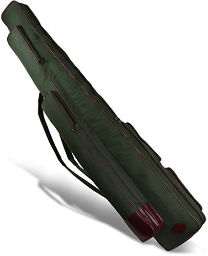 In dieser Angelrutentasche können Sie bis zu 3 Angelruten und vielerlei Zubehörartikel verstauen und transportieren. Das große Hauptfach, in dem die Ruten untergebracht werden, besitzt einen 2-Wege-Reißverschluss und ist 3-fach unterteilt, sodass jede Angelgerät separat eingesteckt und entnommen wird und die Haken und Schnüre sich nicht ineinander verfangen können. Die zwei langen Reißverschlussfächer an den Seiten sind ideal stattdessen langes Angelzubehör (z.B. Angelschirm und klappbarer Unterfangkescher) im Rahmen. Die beiden quadratischen Taschen auf der anderen Seite (ebenfalls mit Reißverschlüssen ausgestattet) eignen sich stattdessen Kleinteile oder Sortimentsboxen. Das pflegeleichte und robuste Material besteht sämtliche 600D Nylon und lässt sich zur Reinigung einfach waschen. Das Rutenfutteral kann mit Hilfe der beiden verstellbaren Schultergurte wohltuend auf dem Rücken getragen werden.