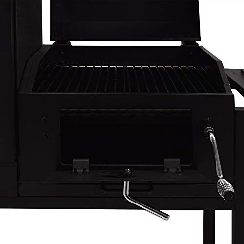 Für passionierte Grillmeister wird hier Multitalent geboten, das verschiedene Geräte zur Outdoor Zubereitung von Speisen miteinander verbindet. Die Aschetür kommt mit sicherem Riegelverschluss, die Ablagefläche mit im Überfluss Platz und abgerundeten Kanten sowie einem eingebauten Thermometer, mit dem Sie das Temperaturspektrum zwischen 0 und 427 Nuance Celsius prägnant eingrenzen können. Ganz hochwertigem Stahlblech gefertigt, sind die Flächen mit speziellem Feuerschutzlack behandelt und trocken nicht mehr da Witterung und allen äußeren Einflüssen. Der Smoker verfügt über Halterungen für Fettbehälter, zwei Kammern, wovon eine zum Grillen und die andere als Räucherofen fungiert und über holzverkleidete und ergonomisch geformte Griffe. Die Höhe von 166, die Breite von 134 und die Abgrund von 60 Zentimetern sehen nach eine angenehme Performance im Einsatz. Mit dem Chef Smoker kann die Grillsaison kommen
