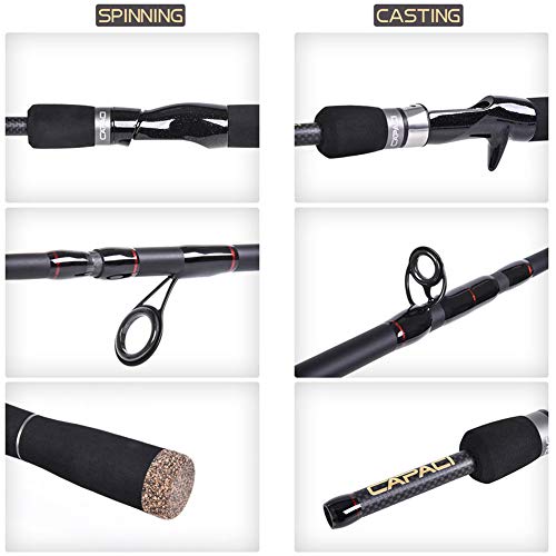 Diese Rute ist mit Kohlefaser und Glasfaser gemischten pole, Edelstahl-Rollenhalter mit Kapuze, Keramik Führungen und abgedichtete Lager ausgelegt. Sein niedriges Reibungskoeffizient macht es haltbar. Und die Rollensitze sind ganz hochfestem Nylon stattdessen eine solide Basis und Komfort den ganzen Tag gemacht. Der Stab ist qualifiziert stattdessen Strom, See, Fluss, Reservoir und Angeln im Teich.