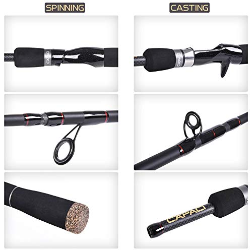 Diese Angel ist mit Kohlefaser und Glasfaser gemischten pole, Edelstahl-Rollenhalter mit Kapuze, Keramik Führungen und abgedichtete Lager ausgelegt. Sein niedriges Reibungskoeffizient macht es haltbar. Und die Rollensitze sind aufgebraucht hochfestem Nylon zugunsten eine solide Basis und Komfort den ganzen Tag gemacht. Der Stab ist brauchbar zugunsten Strom, See, Fluss, Reservoir und Angeln im Teich.