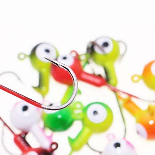 Hakengrößen: (1/32 oz – #6 Haken) (1/16 oz – #4 Haken) (1/8 oz – #2 Haken) (3/16 oz – #1 Haken) (1/4oz – #1 Haken) (3/8oz – #2/0 Haken) (1/2oz – #3/0).