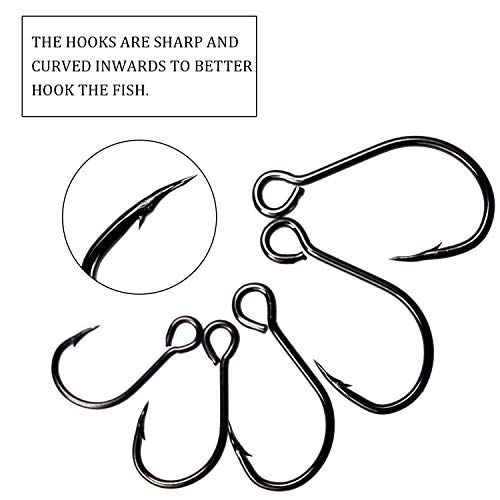 Material: Diese Angelhaken bestehen aus schwarzem Stahl mit hohem Kohlenstoffgehalt. Hochwertige Haken mit hohem Kohlenstoffgehalt. Dieser Inline-Einzelhaken ist härter als normale Haken, um zu unterbinden, dass Ihre Fische weglaufen.