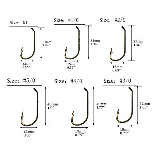 GRÖSSE: Eine Packung Angelhaken an Stelle Baitholder enthält sechs Größen, je 1,1 / 0,2 / 0,3 / 0,4 / 0,5 / 0,10 Stückchen pro Größe. Bitte überprüfen Sie die Größe des Detsil-Hakens in der betrügen Größentabelle .