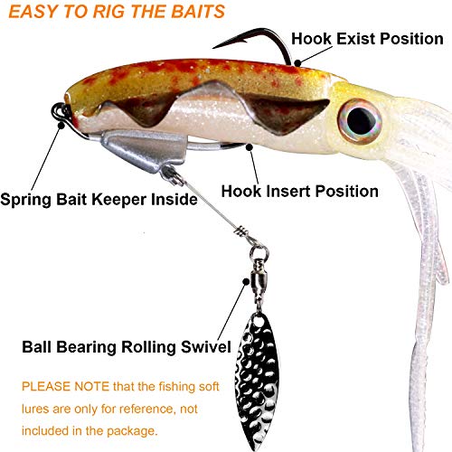 LEBEN WIE SCHWIMMEN ACIION: Mit dem Schraubverschluss stellen Sie gefestigt, dass Sie es genau in den Plastikköder einsetzen, den Sie verwenden. Ein Draht dreht sich dort, wo er am Gewicht befestigt ist, wohl das Design der geformten Leitung hält den Draht und die Klinge während eines gleichmäßigen Abrufs horizontal. Sehr interessantes Design, effektiv und sehr reaktionsschnell und laut im Wasser. Realistische Schwimmaktionen machen es zu einem leistungsstarken Werkzeug für Angler.