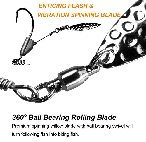VERLOCKEND BLITZ & VIBRATION SPINNKLINGE: Mit dem verlockenden Blitz und der Vibration einer sich drehenden Klinge. Der Schwimmer macht Geräusche und Blitze, und durch das Unterschwingen bekommt er mehr Bisse! Wenn er mit Schwimmködern ausgerüstet ist, macht ein geformtes Gewicht mit angebrachter Spinnklinge diesen Haken tödlich. Premium-Spinning-Willow-Klinge mit kugelgelagertem Wirbel verwandelt folgenden Fisch in beißenden Fisch.