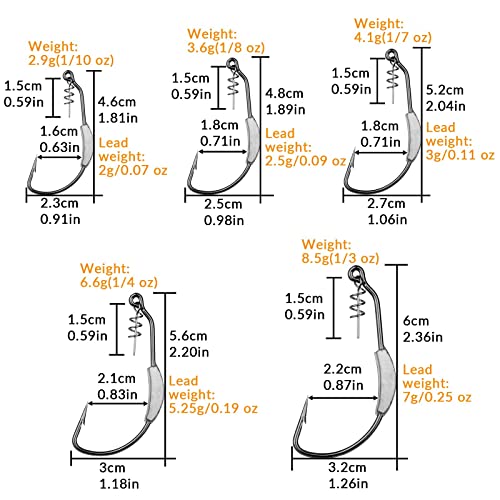 GEWICHTETE HAKEN MIT Twist-Lock: Der Twist-Lock an der Oberseite des Hakens dient der festen Fixierung des Köders und verhindert ein leichtes Herunterfallen des Köders. Das unbewegliche Gewicht am gewichteten Haken hilft, die Wurfweite zu erhöhen und den Köder tiefer untergehen zu lassen und schneller die ideale Wasserschicht zu erreichen. Der gewichtete Haken mit Drehverschluss ist eine ausgezeichnete Kür für das unkrautfreie Angeln.