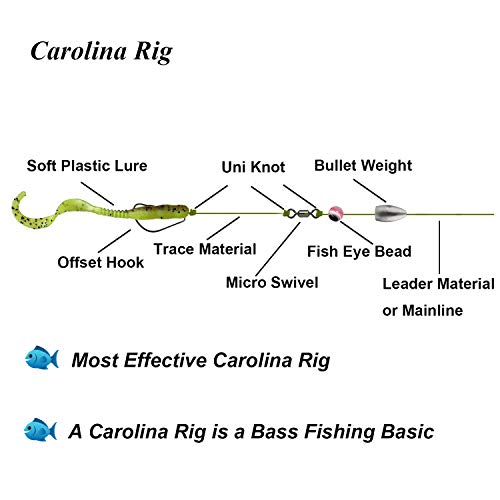 🐟FÜR EFFEKTIVE CAROLINA RIG: Mit Carolina-Köder gefangene Köder fangen den Bass in flachem Wasser und sind eng zu bedecken, andererseits am effektivsten in tiefem Wasser sind dichte Deckschichten wie Punkte, versunkene Inseln und Unkrautlinien. Verwenden Sie Messingplatinen anstelle von Blei, um beim Kontakt mit Steinen und Holz lauteres Klacken zu erzeugen. Einsammeln Sie das Rig mit langsamen intermittierenden Zügen entlang der Unterseite.