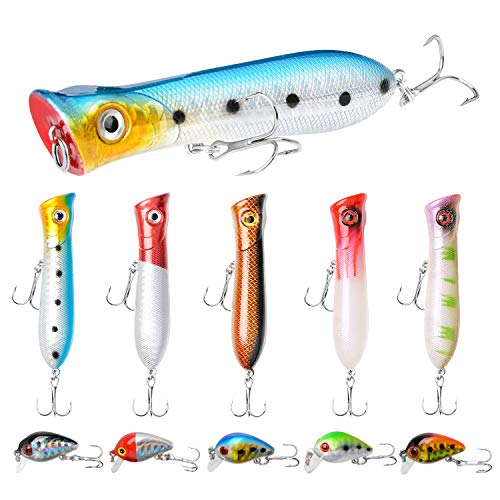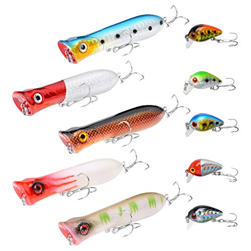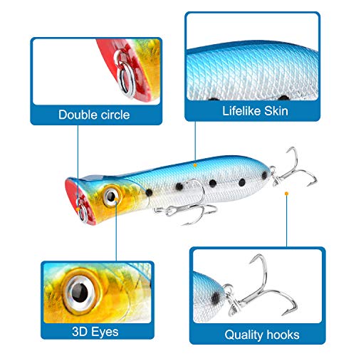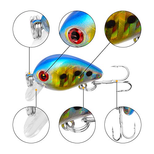 Top Wasser Angelköder Barsch Hartköder 3D Augen Lebensechte Swimbait Angelknöpfe mit Tackle Box für Süßwasser Salzwasser