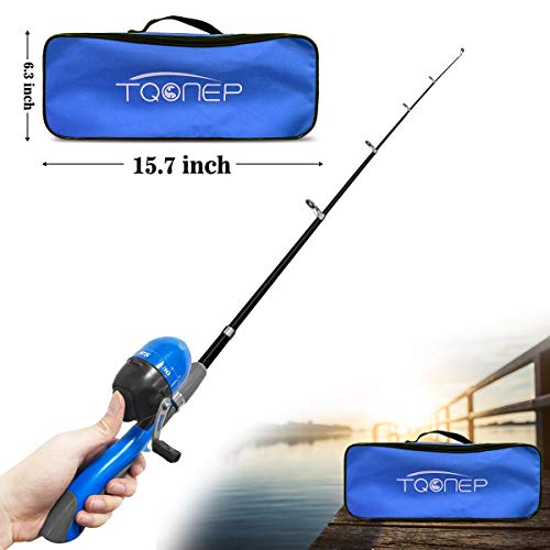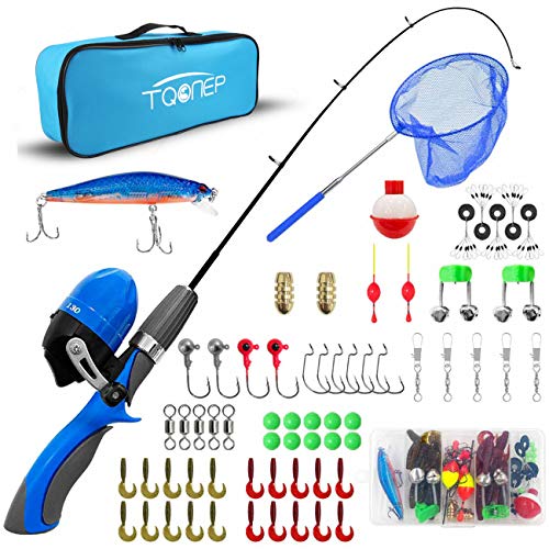 TQONEP Kinder-Angelruten mit Teleskop-Angelrolle, 65-teiliges Kombi-Set mit Reisetasche, Angelbox und Spincast…