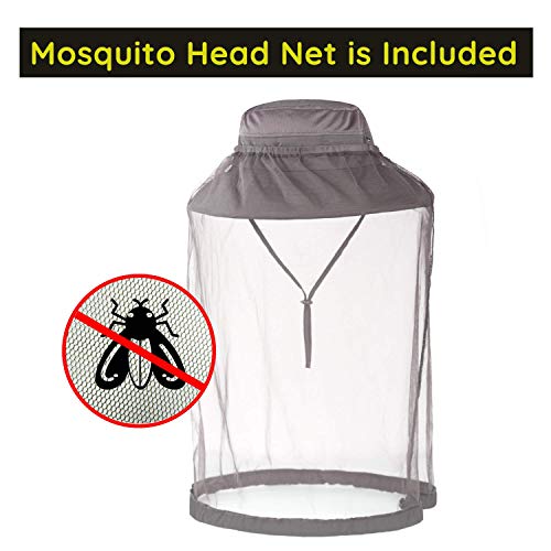 👒 Atmungsaktiv & Anti-Moskito —— Atmungsaktiv & Anti-Moskito: Das Schweißband um den Kopf hat eine starke Fähigkeit, Schweiß zu resorbieren. Die Oberseite ist mit Mesh und Kupferlöchern für Atmungsaktivität gestaltet. Gleichzeitig ist unsere Angelmütze mit einem Moskitonetz ausgestattet, um Stechen von Mücken, kleinen fliegende Insekten und Bienen wirksam zu abwenden.