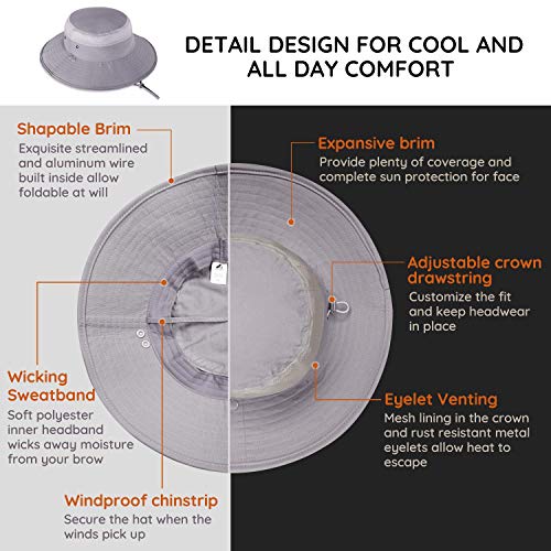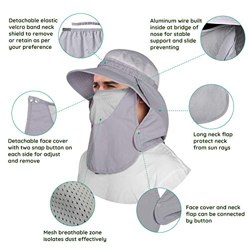 👒 Sonnenschutz & Wasserdicht —— UPF50 + !!! Dank UV-Schutzgewebe verfügt Unigear Sommerhut über hervorragende Sonnenschutzfähigkeit. 8,5 cm verbreiterte Krempe, gleichzeitig ist es mit einem abnehmbaren Halstuch und einer Sonnenschutzmaske ausgestattet. Unsere Sonnenhut garantieren einen 360-Schattierung-Sonnenschutz. Die Oberfläche des Stoffes ist wasserabweisend. Wenn es beispielsweise im Freien regnet, kann der Kopf trocken bleiben.