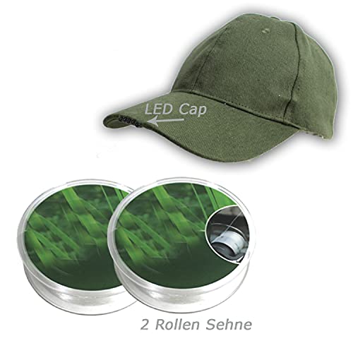 Angelrollen: alle beide 4-fach kugelgelagert, Frontbremse, Übersetzung 5.2:1 | Inklusive zwei Rollen Angelsehne | LED Cap ( Batterien nicht enthalten )