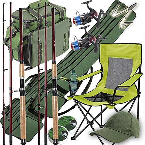 Das perfekte Einsteiger Set für den Allround- Angler. Bei der Zusammenstellung konnten wir auf unsere Erfahrung zurückgreifen. Dieses Angelset bietet ein tolles Aufschlag-Leistung-Liebesaffäre. überaus hohen Wert haben wir auf Qualität und Fängigkeit gelegt. **2x Ruten, 270 cm Rutenlänge (Steckrute) Wurfgewicht 50 g. Gute mittlere Schritte, hochwertiger Korkgriff, 5 Keramikringe und eine Rutentasche mit 155 cm für montierte Ruten,2x Angelrollen: Angel Rollen 3000 Stationärrolle: 4 Kugellager, Weitwurfspule, feinjustierbarer Fronbremse, anklappbare Kurbel, Übersetzung 5.2:1 | hohe Dehnbarkeit Geeignete Elastizität.Angelstuhl faltbar, leistungsfähig bis 110 kg für den einfachen Transport, Inklusive Multifunktionswerkzeug Nicht mehr da Stahl und ein LED Cap ( Ohne Batterien ). Wasserabweisende Zubehörtasche für den Angelsport Nicht mehr da stabilem Polyester mit PVC – Versiegelung, großes Hauptfach mit weit aufklappbarer Frontlasche, inklusive 4 großen Zubehörboxen, seitliche Zusatzfächer mit praktischem Ratschenverschluss, Netzeinsatz und wasserabweisende Lasche, Zusatzfach oben mit 2 frei verstellbaren Trennstegen, Maße Hauptfach ca. 25 x 29 x 19,5 cm (HxBxT), Gesamtmaße ca 32 x 42 x 21 cm (HxBxT). Das perfekte Einsteiger Set für den Allround- Angler**