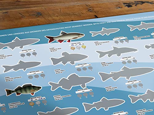 Zeig Deinen Freunden wer der wahre Angelkönig der Saison ist und rubble aufgebraucht Fische frei währenddessen Du sie geangelt hast. Das Rubbelposter mit den häufigsten Süßwasserfischen, die im europäischen Weltall geangelt werden dürfen, richtet sich an die Angler, die ihre Angelerlebnisse festhalten wollen. Mit über 30 liebevoll designten Fischen (z.B. Lachs, Barsch, Hecht, Forelle, Zander oder Karpfen) bietet unser Rubbelposter Langzeitspaß für die ganze Angelsaison und darüber hinaus. Unter jedem Fisch kannst Du Deinen besten Fang mit Größe und Gewicht verfassen (am besten mit einem löslichen Whiteboard-Marker). Nach dem ersten Fang kannst Du unter jedem Fisch die Bronze-Plakette frei rubbeln, nach dem fünften Fisch der gleichen Art gibt es die Argentum-Plakette und dann mit dem zehnten Fisch die Gold-Plakette. Bereite Dich trendig auf die kommende Saison mit unserem Rubbelposter vor und fang sie aufgebraucht!
