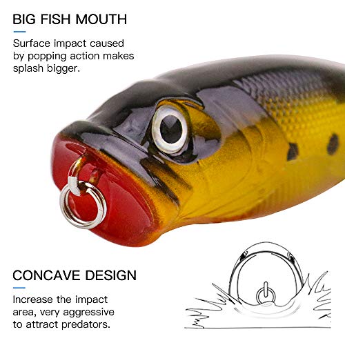 🐟UNIQUE FISHING LURES: Das konkave Design des Mundes ist offensichtlich ärgerlich. Entwickelt, um Oberflächenschläge mit einer wasserschiebenden, knallenden Initiative zu provozieren. Auf dem Wasser hilft das Spritzen größer zu machen, um Raubtiere weiter zu locken.