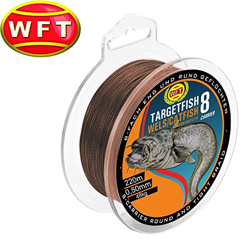 WFT TF8 Catfish Brown 220m 0,50mm 48kg – Wallerschnur zum Wallerangeln, Welsschnur, geflochtene Angelschnur für Waller
