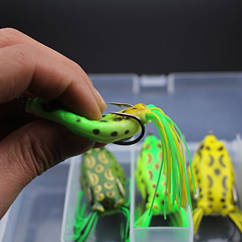 Dieser Arbeit ist ein detaillierter Körper sämtliche Kunststoff mit hoher Zersplitterung und echte Schwimmaktionen als ein echter Frosch oder ein Stierfrosch, die maximale Leistung bieten, um Zielfische anzulocken. Die superweiche Hohlkörper-Konstruktion ermöglicht es dem Froschköder im oberen Wasser zu schwimmen und erleichtert den Absturz des Hakens.