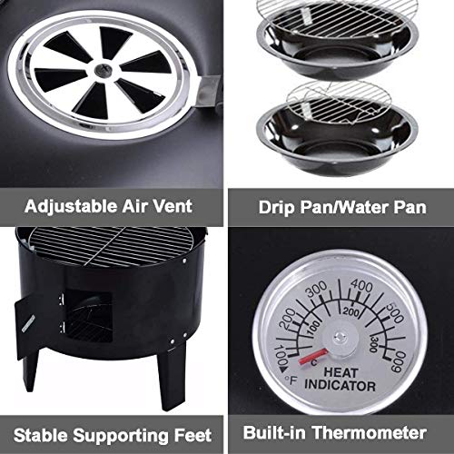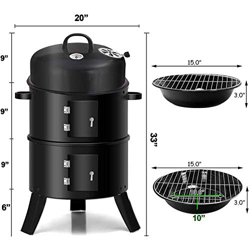 * [2 ACCESS DOORS] – Unsere Vertikal Charcoal Raucher hat zwei Zugangstüren, man den Zustand von Lebensmitteln anpassbar zu überprüfen, ein anderes Holzkohle oder Holz in der Zeit hinzuzufügen. Und es verfügt über 1 Kohlenbecken, 1 Wasser / Tropfschale, 2 Grills und 1 Charcoal Netz.