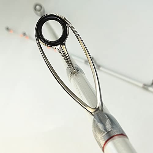 Ausführliches Design: Verstärkter Metall-Keramik-Führungsring, glatte Linien, robust und langlebig, schmerzt nicht die Angelschnur, hochkohlenstofffaserverstärkte Carbon-Tuch-Wickeldesign, tut Ihre Hände nicht, rutscht nicht, und die Taille ist fantastisch,eher für Ihr Angeln geeignet.Große Last, besserer Abschirmung.Der spiralförmige Metallradsitz ist langlebig und gefestigt, und die Angelspule ist nicht leicht zu lockern.
