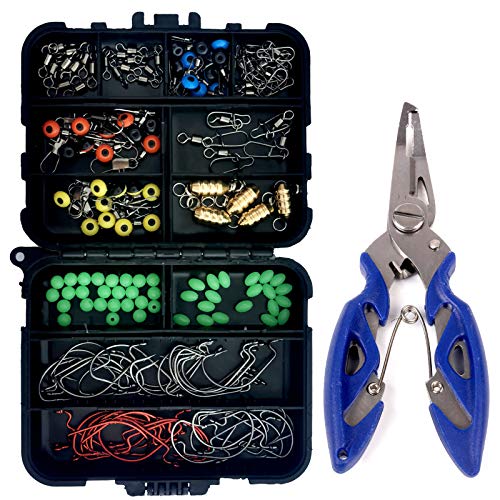 172-teiliges Angelzubehör-Set mit Angelausrüstungsbox, Angelwirbel, Snaps Jighaken Köder inkl.