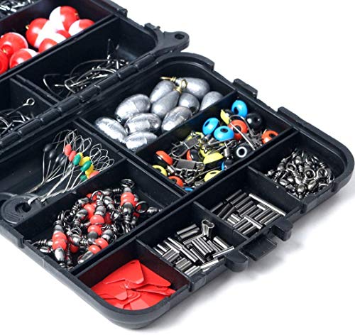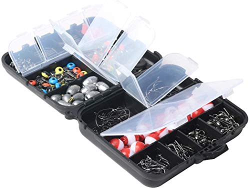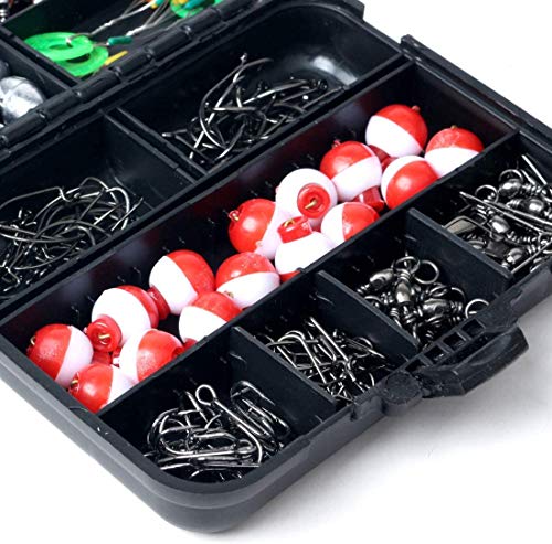 263-teiliges Angelzubehör-Set mit Angelausrüstungsbox, inklusive Angelblei, Gewicht, Fischwirbel, Snaps Jighaken, Köder, Blei