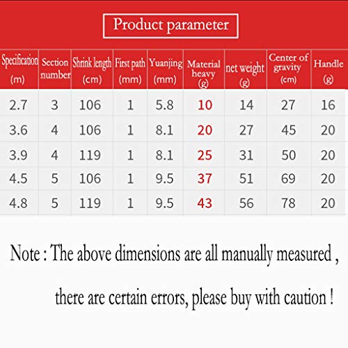 3. Größe Auswahl: Diese Angelrute hat 5 Größen für Sie aus, die detaillierte Größe Urteilsfindung auf dem Abbildung zu sehen.(Die Angelrute zusammengezogen und in der Länge verändert werden kann, sehr geeignet für Freunde, die wie Angeln)