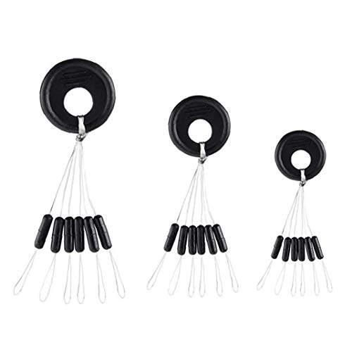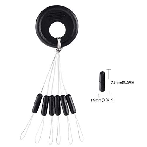 ein 6 in 1 Angel Stoppern, schwarzem Ring und 6 schwarz zylindrischen stoppers.Lightweight und kompakt, leicht zu carry.Suit zugunsten Strom, Fluss, See, Meer Angeln, reservoir pond.It eine Art Fanggerät, Gummiprodukt verwendet, um die Schlund des Schwimmkörpers zu fixieren, und werden häufig in langen Stab verwendet.
