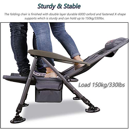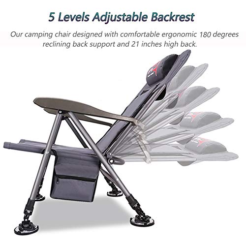♥ Verstellbare Rückenlehne: Dieser tragbare Stuhl gibt Ihnen ein Premium-Sitzerlebnis mit 5 Position Rückenlehne, langlebigem Diamanten Ripstop-Polyester und atmungsaktive Mesh-Rückenlehne auf.