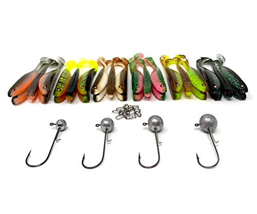 56-teilige Box mit GLASAUGEN Gummifischen in 6 Farben + passende Jigköpfe in 4 Gewichten + ultrascharfe Haken + 10 Snaps. Die Gummifisch-Box zum Zanderangeln!
